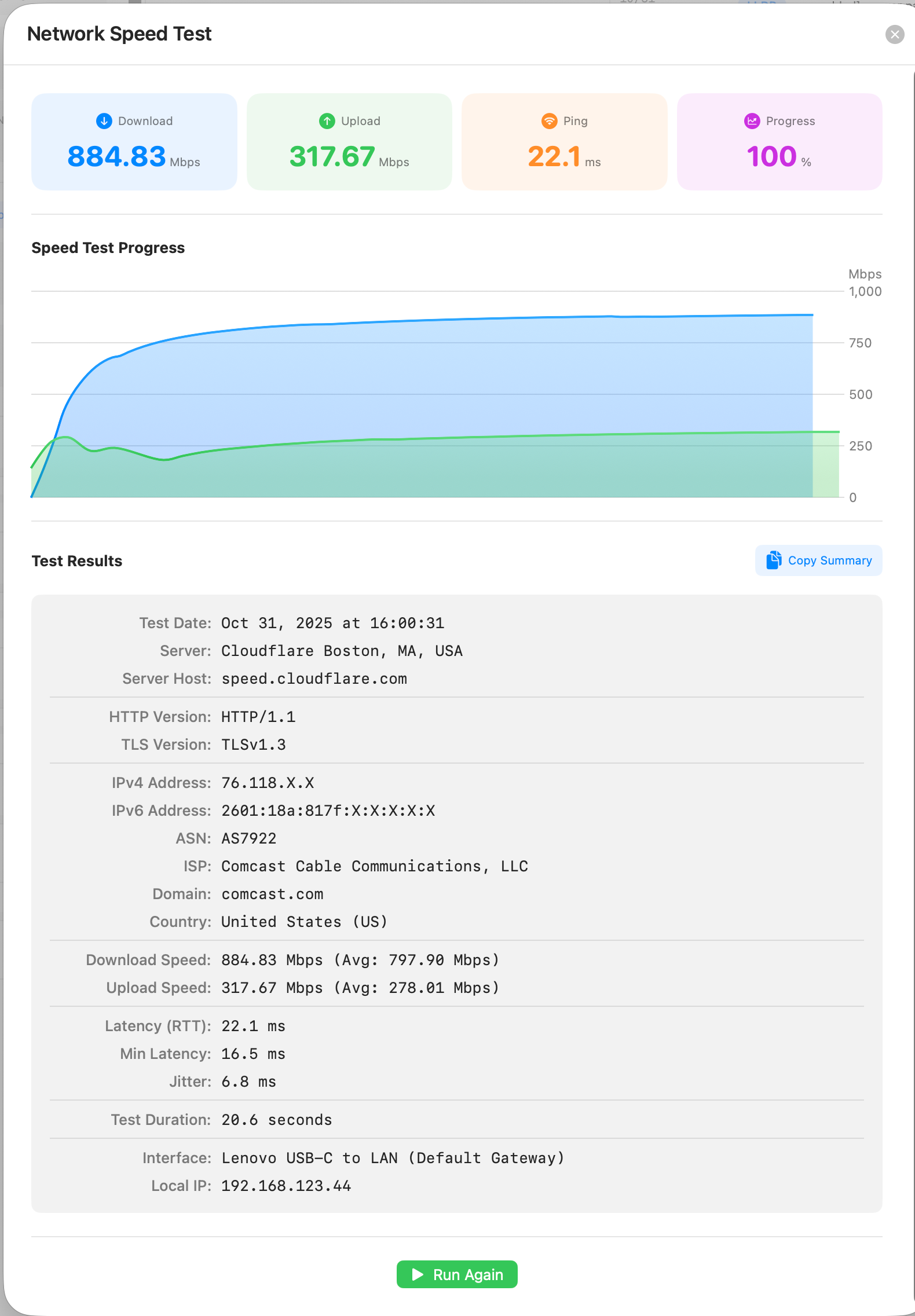 Use Cases: - Document your connection speed - Share with ISP support when troubleshooting - Compare results over time - Report connectivity issues