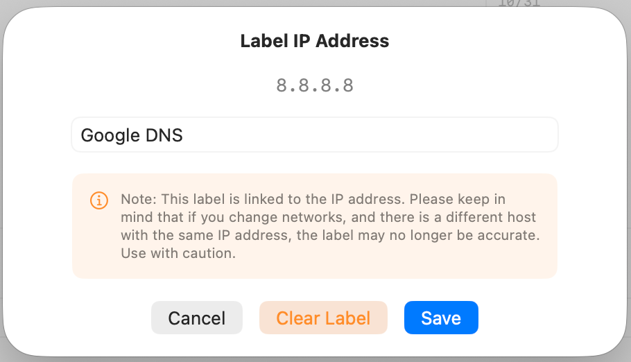 NOTE: You can clear a label by clicking "Clear Label". This will go back to the default of showing the IP address/DNS name.