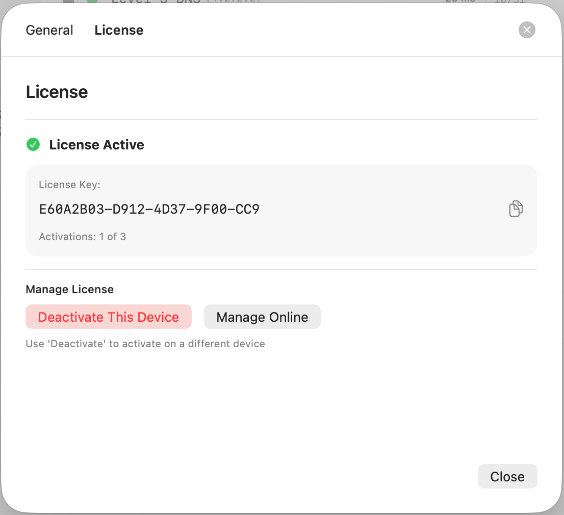 Activation Count / Limit: - Example: "2 / 3" = 2 devices activated out of 3 allowed - Tracks how many Macs use this license - Deactivate unused devices to free slots